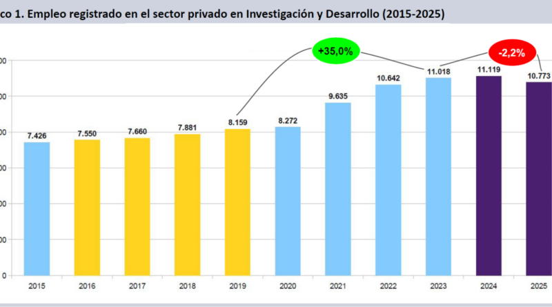 Según un informe especial realizado por el Grupo EPC-CIICTI en el que se analizan las principales variables de la I+D privada -el equivalente al sector científico en empresas-, en 2025 los salarios en este rubro se encontraron un 2,1% por debajo del promedio anual de 2023, a pesar de haberse incrementado un 3% respecto del promedio de 2024.