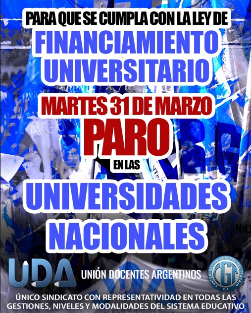 Los NODOCENTES de la FATUN llamaron a un paro para el 31 de marzo, en reclamo de paritarias, recomposición salarial y mayor financiamiento universitario.