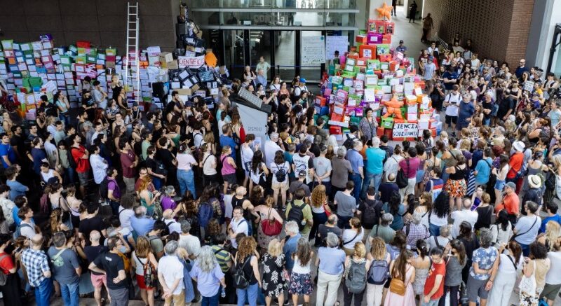La convocatoria fue impulsada por la Red de Autoridades de Institutos de Ciencia y Tecnología (Raicyt). “Frente al ajuste y la destrucción que el Gobierno impone, seguimos defendiendo la Ciencia Argentina. Construyamos futuro”, señalaron, junto con el pedido a participar con cajas de regalos “para armar un gran árbol de nuestros proyectos y deseos”.