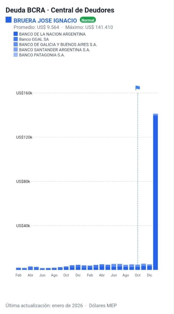 Según pudo verificar La Izquierda Diario de la información pública, Bruera Grifoni recibió un préstamo hipotecario del Banco Nación por un valor de $ 200 millones, aproximadamente U$S 140 mil. El mismo modus operandi que muchos jóvenes “libertarios” que tomaron funciones en el Estado como bonificación por ajustar a los trabajadores. Según la resolución, fue designado en la gerencia ad honorem, también tiene el cargo de director suplente de Nucleoeléctrica sin salario, lo que deja abierta la pregunta de cómo paga su préstamo.